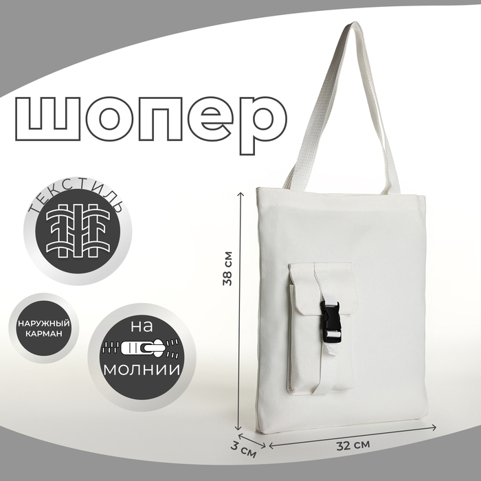 Шопер на молнии, из текстиля, цвет белый