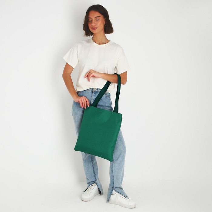 Шопер NAZAMOK, однотонный, 35х0.5х40 см, отд без молнии, без подклада, зелёный