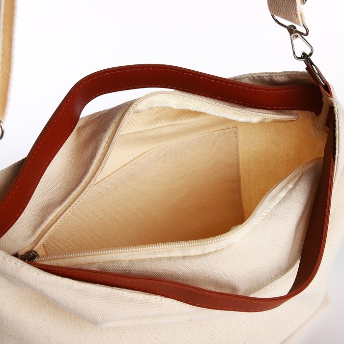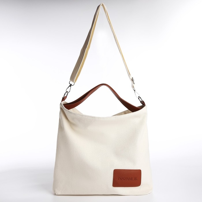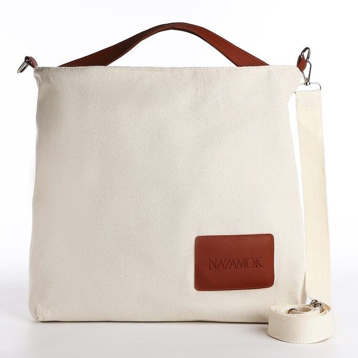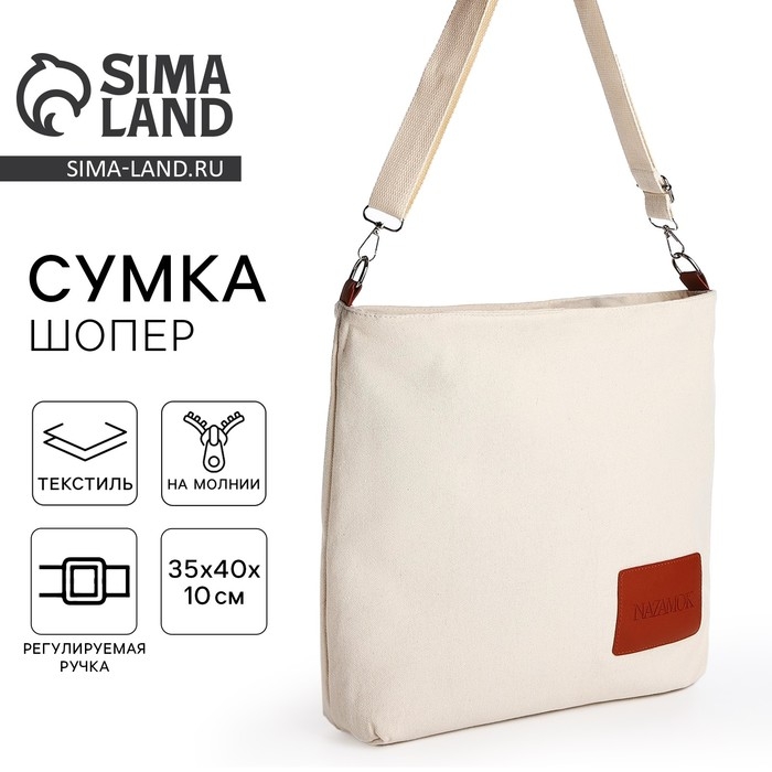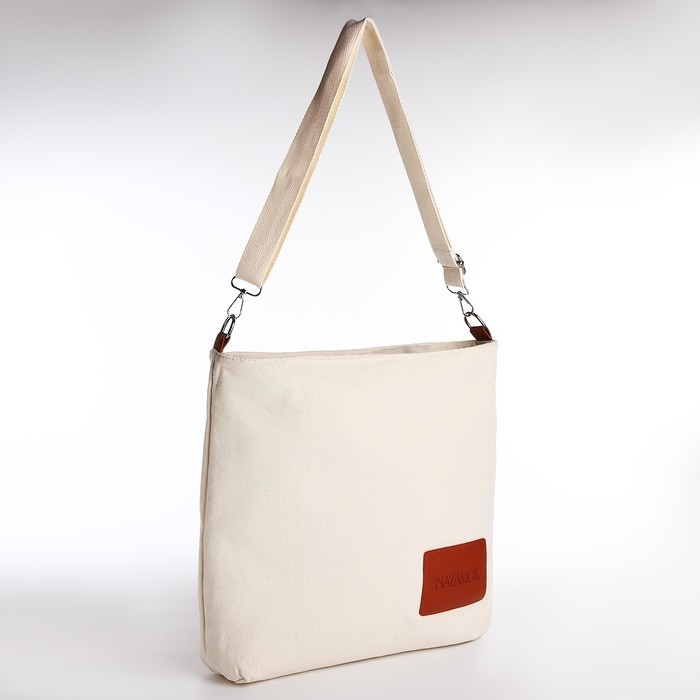 Шопер текстильный NK , 40х35х10 см, отдел на молнии, цвет бежевый