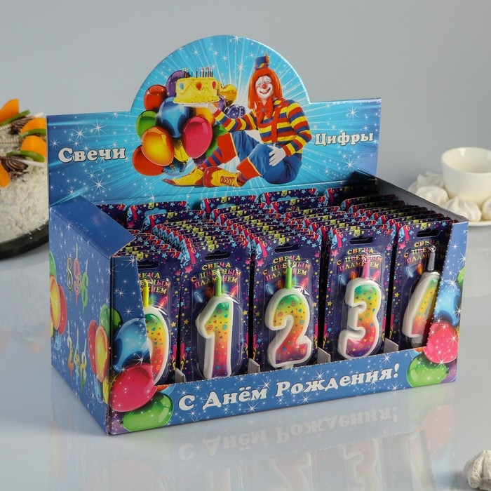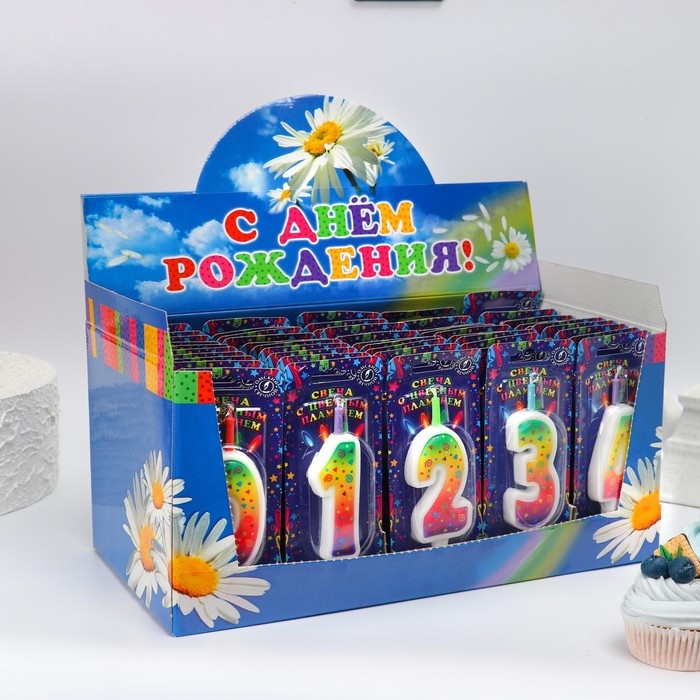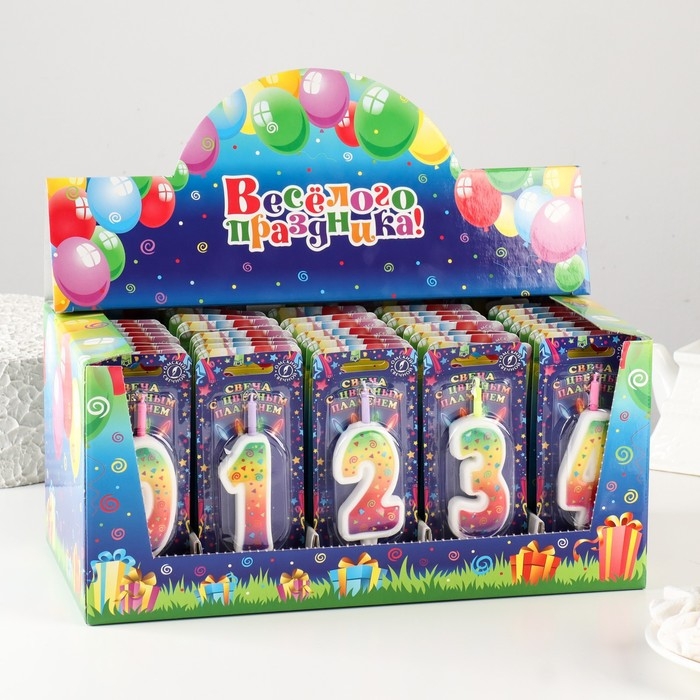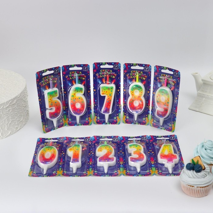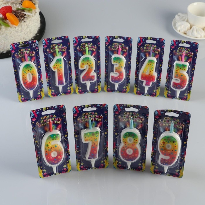 Шоу-бокс со свечами для торта цифры "Цветное пламя", 10,2 см, 50 штук