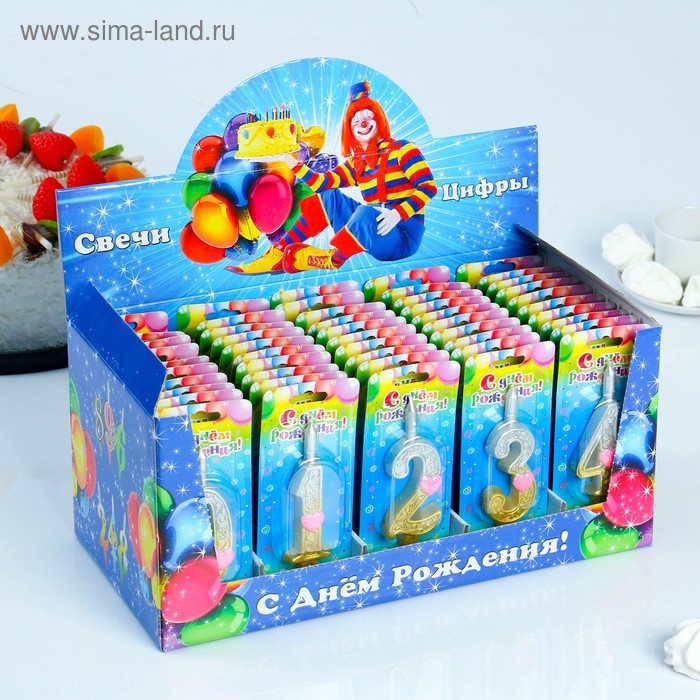 Шоу-бокс со свечами для торта цифры "Сердечки", 10,2 см, 50 штук
