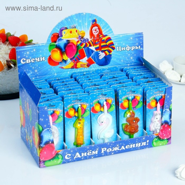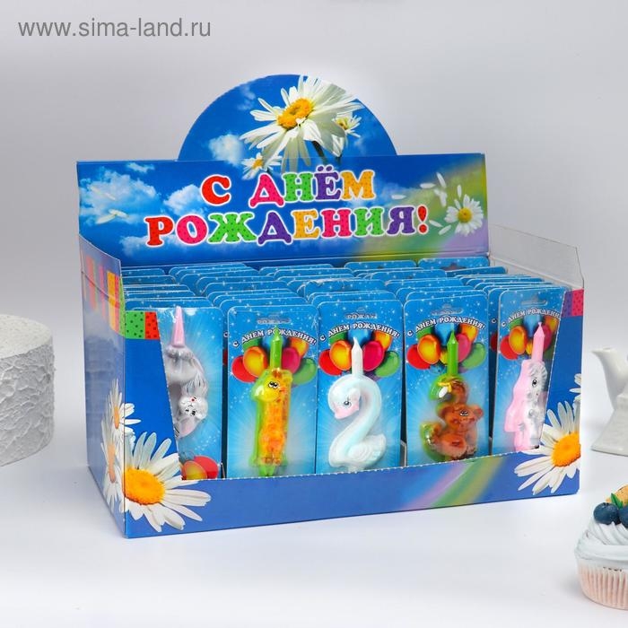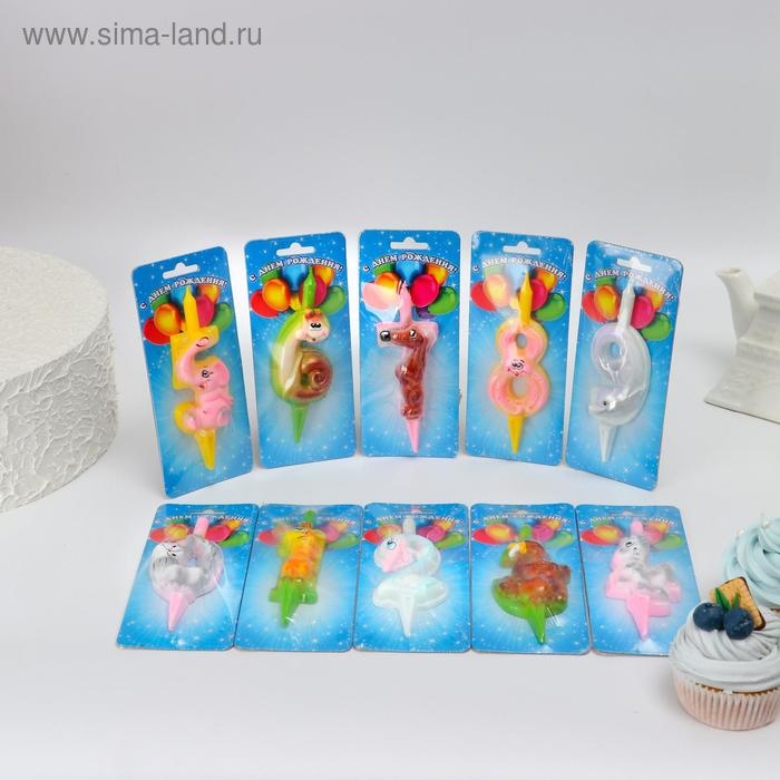Шоу-бокс со свечами для торта цифры "Зверушки" 10,2 см, 50 штук
