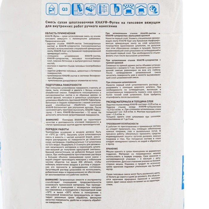 Шпаклевка гипсовая универсальная Кнауф Фуген (Knauf Fugen), 10кг