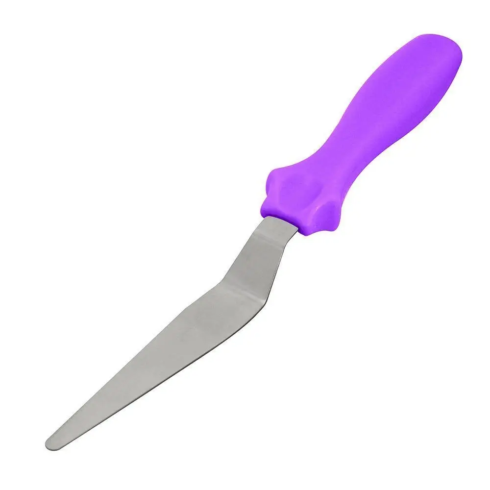 Заостренный шпатель идеально подходит для декорирования тортов и выпечки. Инструмент используется для сглаживания неровностей на торте, для равномерного нанесения крема, сливок. Благодаря заостренному концу, шпатель удобен для работы даже в труднодоступных местах. Изделие пригодится на кухне для приготовления и переворачивания готовящихся блюд, например, стейков, оладий, сырников. Не используйте шпатель с антипригарными поверхностями. После использования промойте в проточной воде с жидкими моющими средствами. Изготовлено: рабочая часть из коррозионностойкой (нержавеющей) стали, ручка из пластмассы (полипропилен). Длина 22 см.