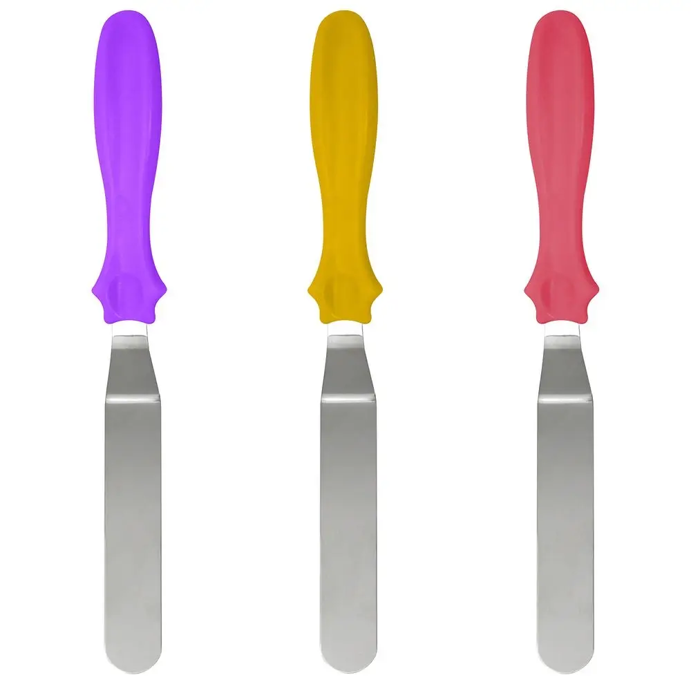 Для декорирования тортов и другой выпечки используется большое количество инструментов. Один из них — кондитерский шпатель, с помощью которого сглаживаются неровности, наносится крем, сливки, шоколад на верх и боковины торта. Также шпатель подойдет для смазывания булочек джемом шоколадом, для нанесения масла на готовые блинчики. Шпатель станет отличным помощником в переворачивании блюд, может заменить собой лопатку во время приготовления блинов, оладий, стейков. Изготовлено: рабочая часть из коррозионностойкой (нержавеющей) стали, ручка из пластмассы (полипропилен).