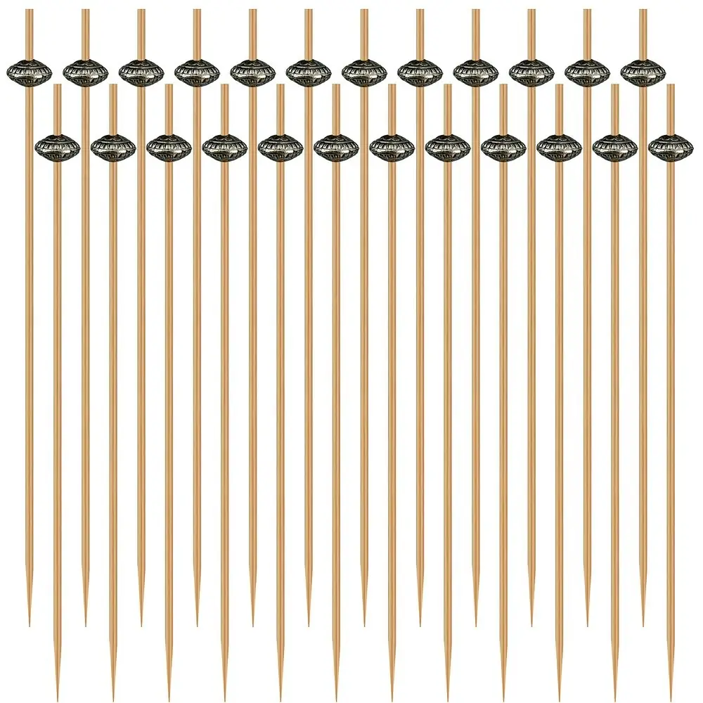 Шпажки используются при сервировке стола многослойными мини-бутербродами (канапе) из овощей, фруктов, ягод, сыров и мясных продуктов. Идеально подходят для фуршетов, вечеринок и праздников. Выбирайте любимые ингредиенты для приготовления порционных блюд, насаживайте их на шпажки и готовьте с удовольствием! Шпажки заменят десертные вилочки на вашем праздничном столе, а оригинальный дизайн поднимет настроение гостям. Шпажки продаются в наборе по 24 штуки, это оптимальный вариант, если вы планируете позвать большое количество гостей. Шпажки предназначены для одноразового использования. Изготовлены из дерева (бамбук), декор из пластмассы (ABS). Общая длина шпажки 12 см.