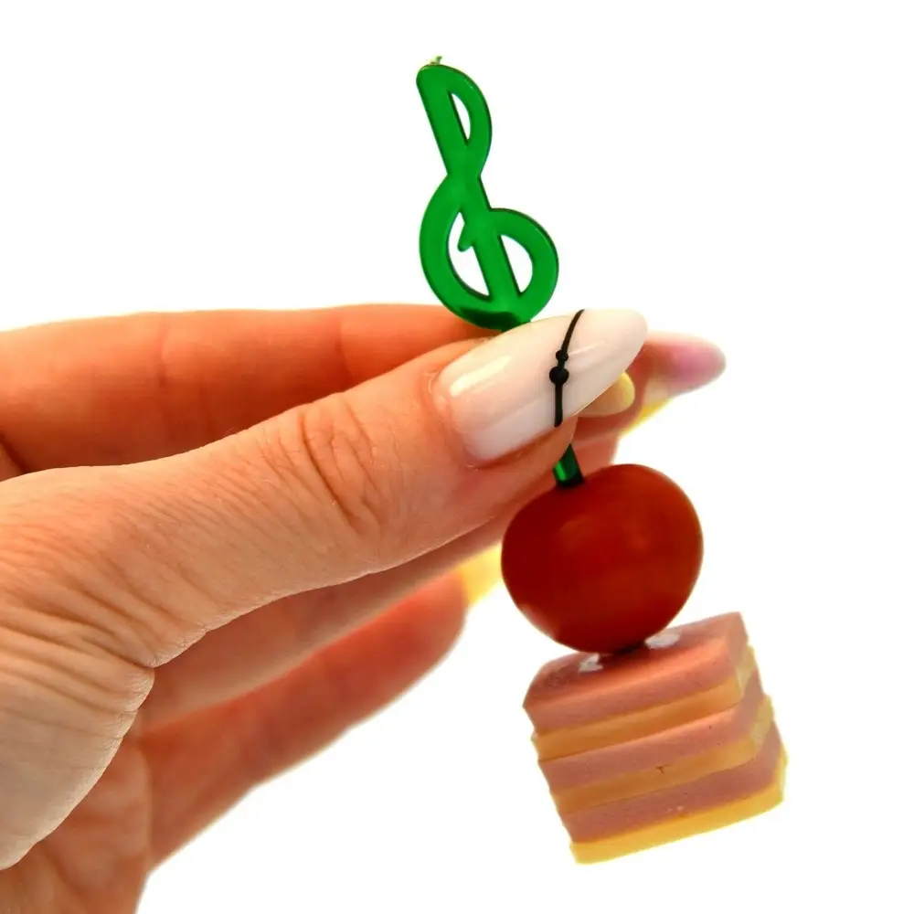 Шпажки для канапе-идеальное решение для праздничного стола. Для фуршетов и вечеринок нет ничего лучше канапе — миниатюрных закусок, нанизанных на шпажки. Фуршетные мини-закуски, приготовленные из овощей, ягод, фруктов, сыров, рыбных и мясных продуктов. На одной стороне изделия расположено острие, на другой декоративный элемент. Канапе нанизываются на шпажки и смотрятся оригинально на праздничном столе. Закуски актуальны не только на фуршете, но и на детском празднике, на вечеринке и как дополнение к банкетным блюдам. Кроме того, такие пики смогут заменить десертные вилочки, с их помощью можно брать небольшие закуски: кусочки сыра, картофель фри, оливки, креветки и т.п. Шпажки предназначены для многоразового использования.