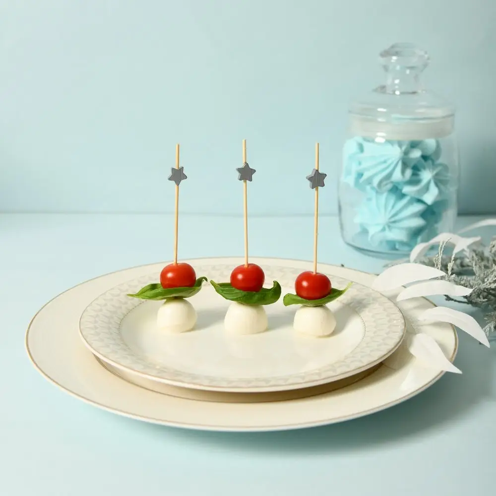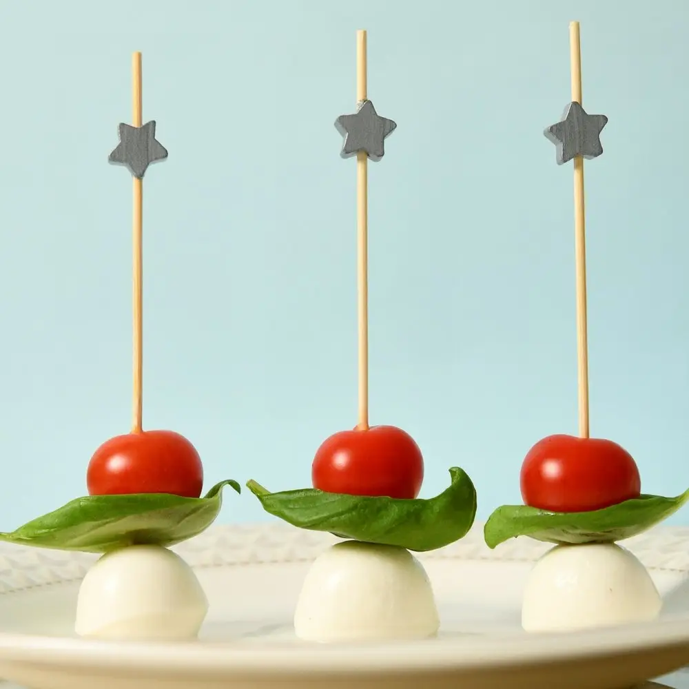 Шпажки используются при сервировке стола многослойными мини-бутербродами (канапе) из овощей, фруктов, ягод, сыров и мясных продуктов. Идеально подходят для фуршетов, вечеринок и праздников. Выбирайте любимые ингредиенты для приготовления порционных блюд, насаживайте их на шпажки и готовьте с удовольствием! Шпажки заменят десертные вилочки на вашем праздничном столе, а оригинальный дизайн поднимет настроение гостям. Шпажки продаются в наборе по 24 штуки, это оптимальный вариант, если вы планируете позвать большое количество гостей. Шпажки предназначены для одноразового использования.