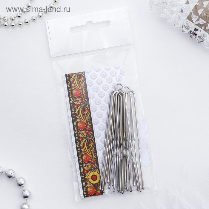 Шпилька для волос "Народная" 7,2 см, хром (набор 10 шт)