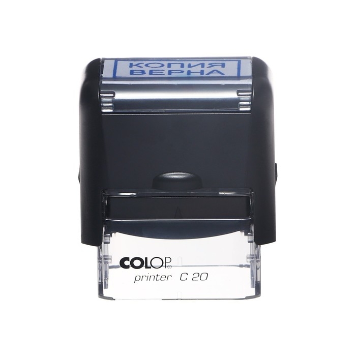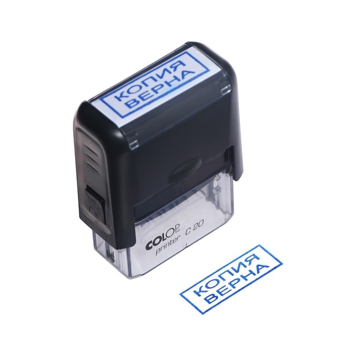 Штамп Colop "Копия верна" будет незаменим в отделе кадров или в бухгалтерии любой компании, а компактный размер позволяет легко оставаться мобильным. Надёжный корпус оптимального размера выполнен из пластика и оснащен с поворотным механизмом, окрашивающим текст. Абсолютно прозрачное основание для удобства размещения штампа на документах.