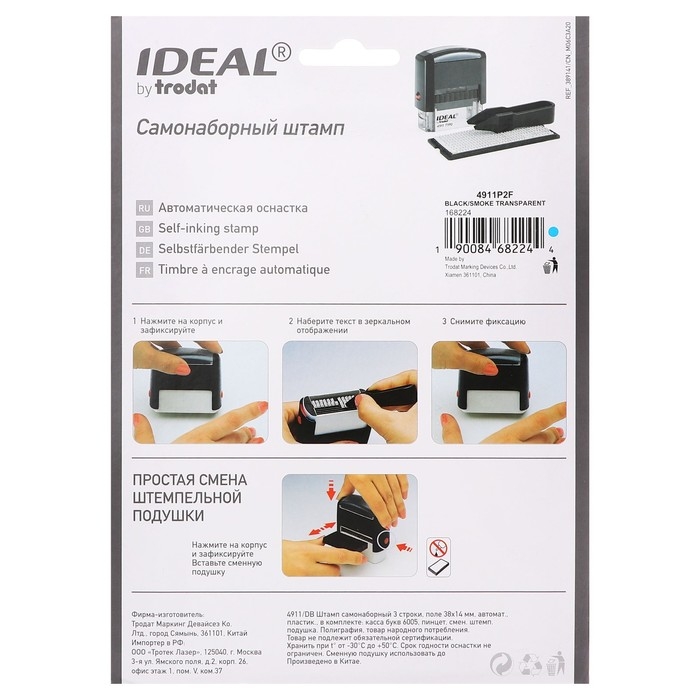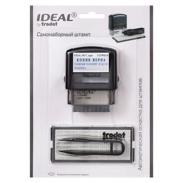 Штамп автоматический самонаборный Trodat IDEAL 4911 typo, 3 строки, 1 касса, 38 х 14 мм