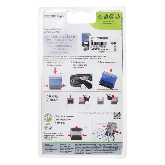 Штамп автоматический самонаборный Trodat PRINTY 4929 typo, 6 строк, 1 касса, 50 х 30 мм