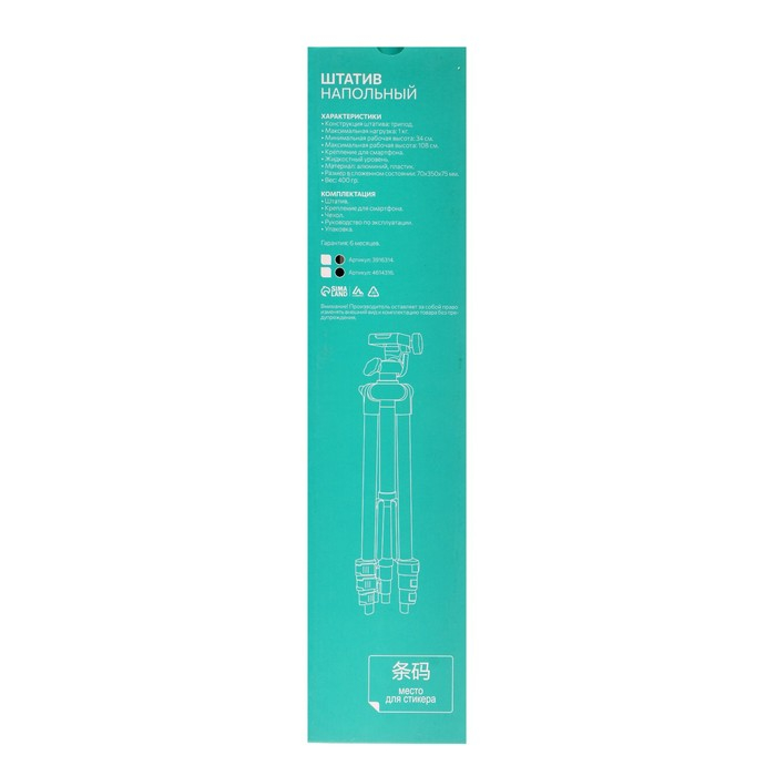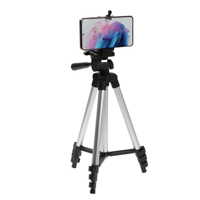 Напольный штатив-трипод предназначен для использования с фотоаппаратами и видеокамерами. Наклонная головка позволяет ориентировать и зафиксировать камеру для пейзажных или портретных съёмок. Стандартная резьба штатива 1/4 дюйма обеспечивает совместимость с широкой линейкой устройств. В комплекте находится специальное крепление, которое подойдёт для фиксации смартфона. Устройство обладает компактным размером и небольшим весом. Легко сложить в чехол и взять с собой. Регулируйте высоту штатива от 34 см до 108 см и фиксируйте её благодаря клипсам, которые расположены на ножках. Жидкостный уровень поможет выровнять аксессуар для грамотной съёмки.