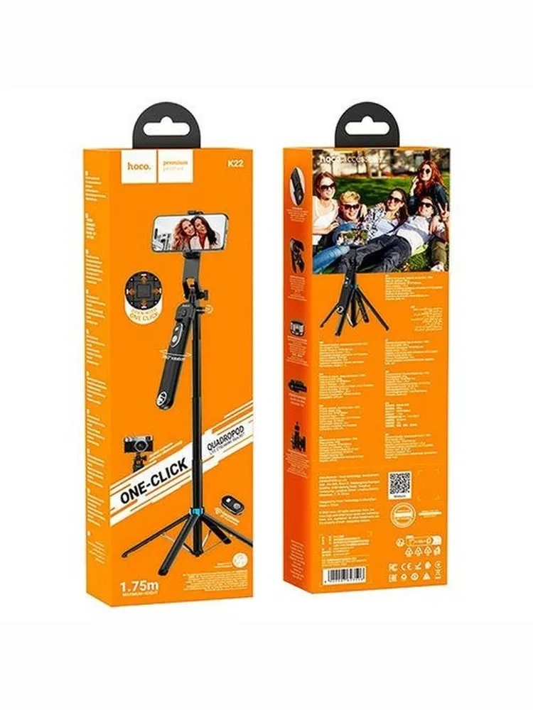 2. **Трансформируемый дизайн**: Hoco K22 используется как монопод и как трипод, что позволяет делать стабильные и профессиональные снимки. Регулируемые ножки трипода обеспечат устойчивость на любой поверхности.