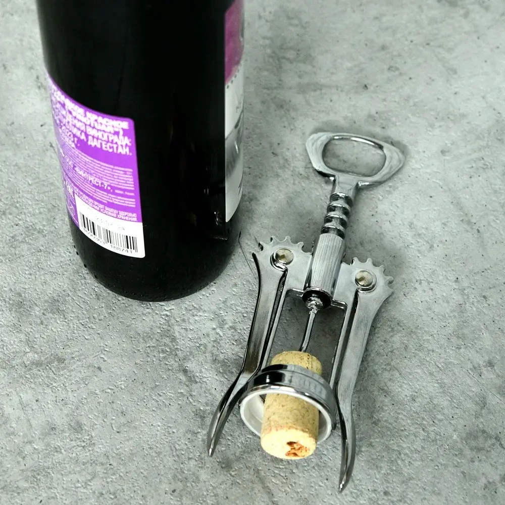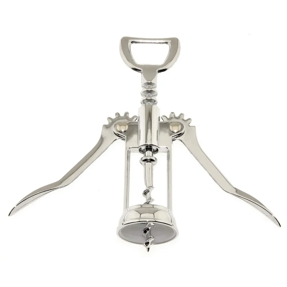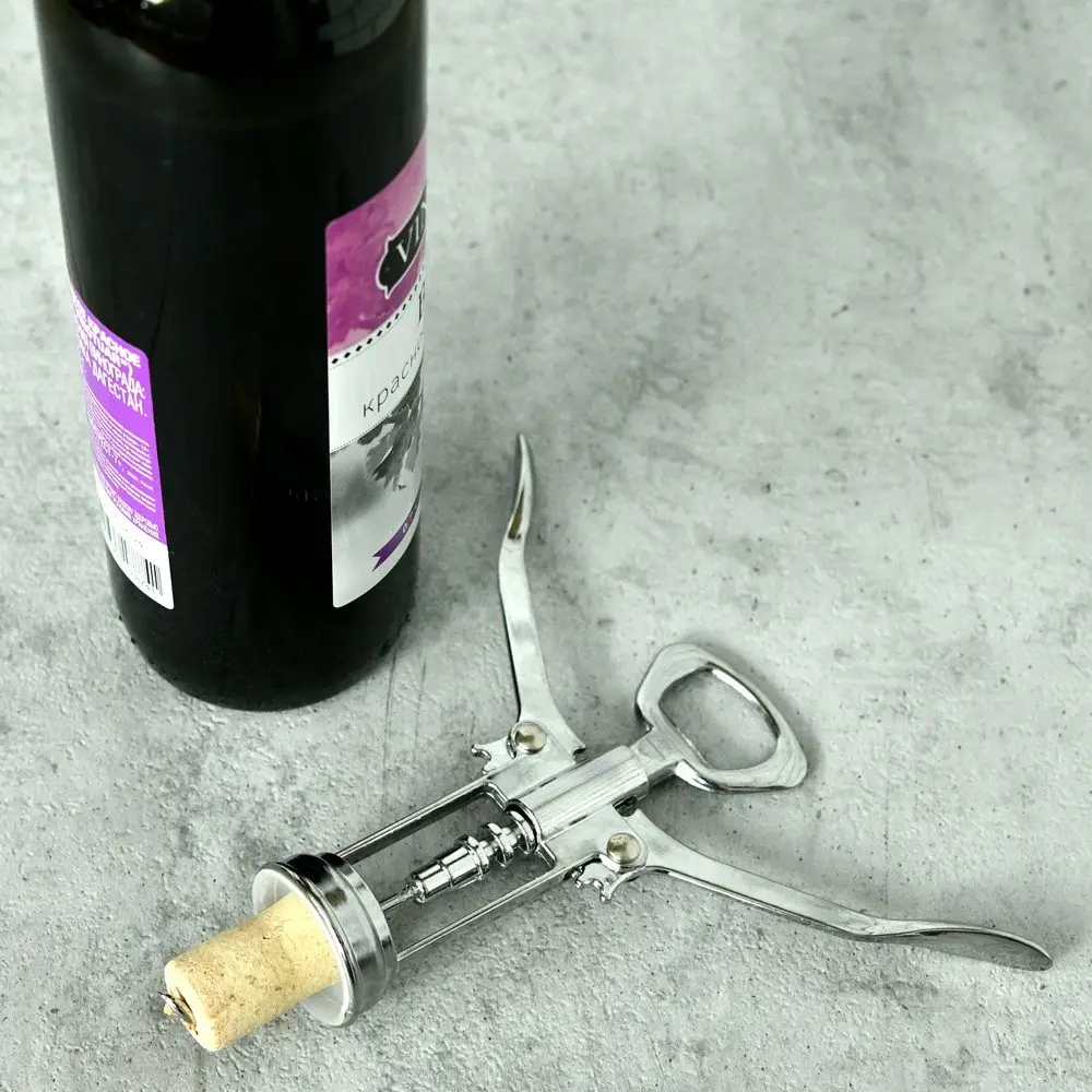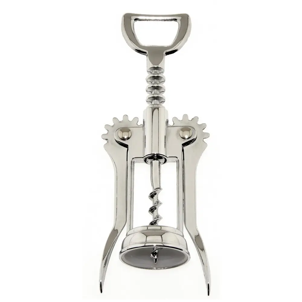 Качественный штопор поможет быстро и аккуратно открыть бутылку с пробкой. Металлический штопор имеет классический рычажный механизм, который еще называют «бабочка». С таким инструментом можно открыть бутылку, не прилагая усилий. Достаточно ввинтить спираль до упора, при этом «крылья» устройства должны подняться вверх. При нажатии на рычаги пробка выталкивается наружу. Ручка изготовлена таким образом, что с ее помощью можно открывать металлические крышки. Изделие изготовлено из металла с хромированным и эмалевым покрытием.