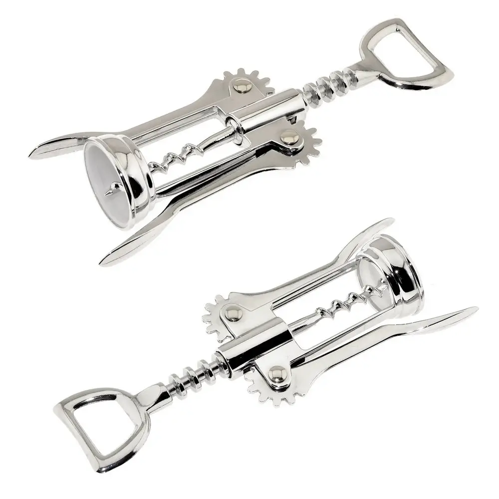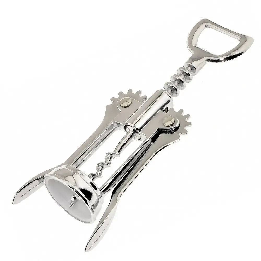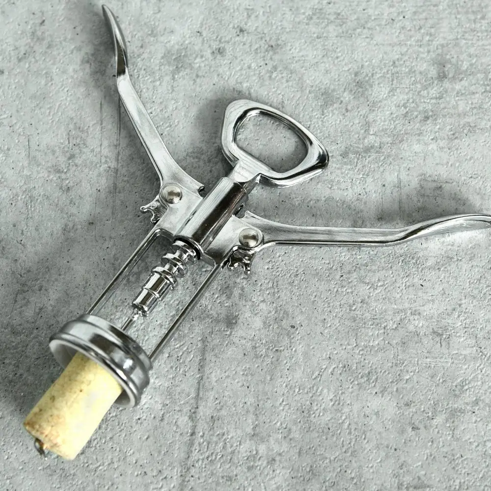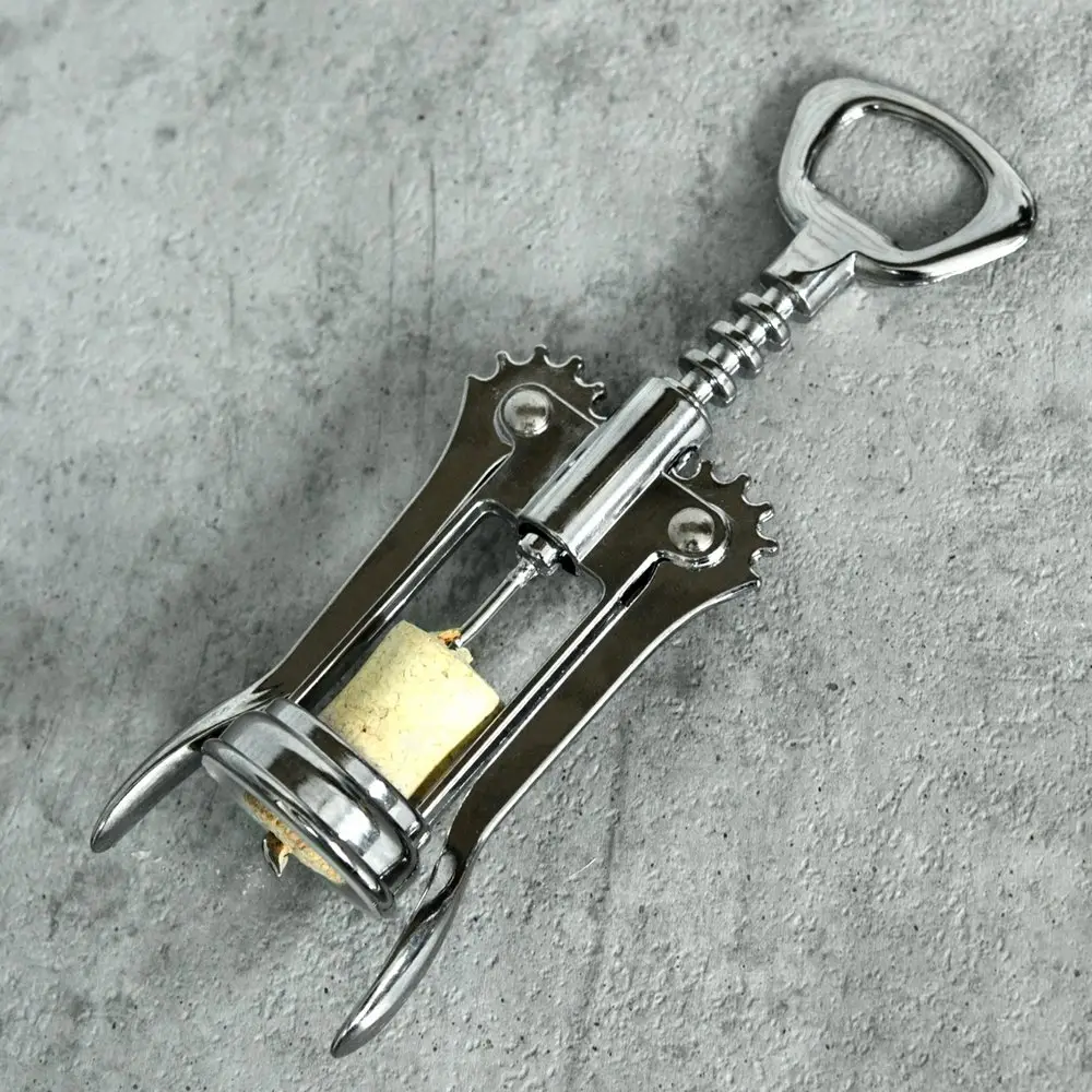 Качественный штопор поможет быстро и аккуратно открыть бутылку с пробкой. Металлический штопор имеет классический рычажный механизм, который еще называют «бабочка». С таким инструментом можно открыть бутылку, не прилагая усилий. Достаточно ввинтить спираль до упора, при этом «крылья» устройства должны подняться вверх. При нажатии на рычаги пробка выталкивается наружу. Ручка изготовлена таким образом, что с ее помощью можно открывать металлические крышки. Изделие изготовлено из металла с хромированным и эмалевым покрытием.