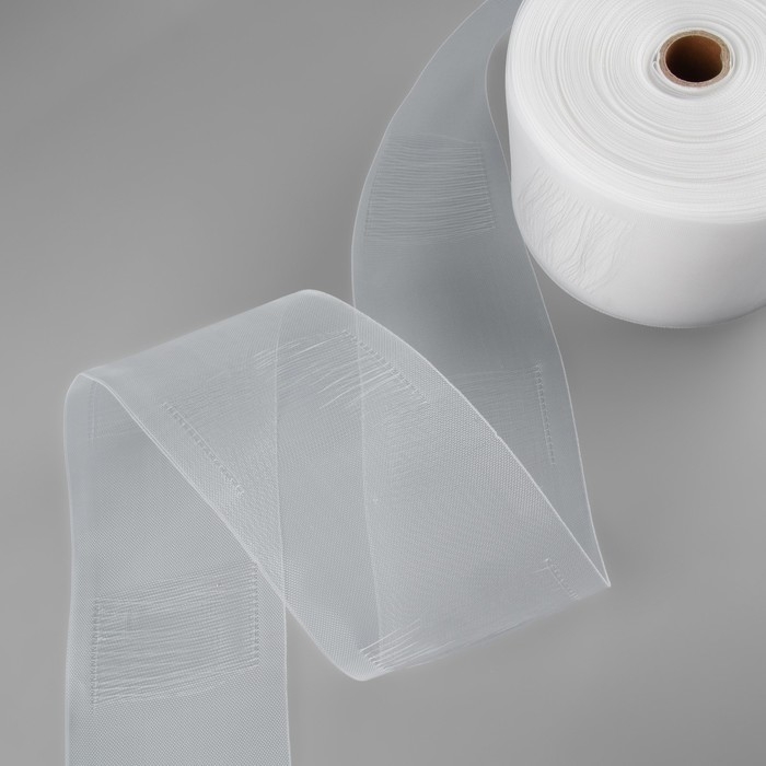 Шторная лента классическая, органза, 2,5 см, 100 ± 1 м, цвет прозрачный/белый