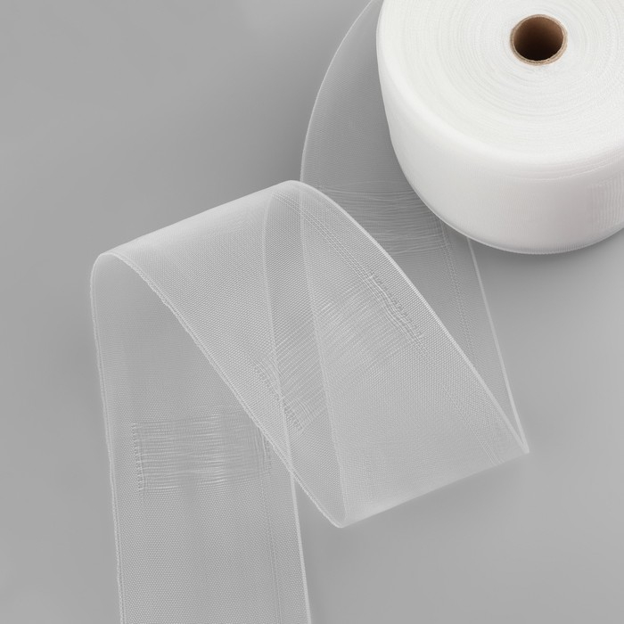 Шторная лента классическая, органза, 2,5 см, 100 ± 1 м, цвет прозрачный/белый