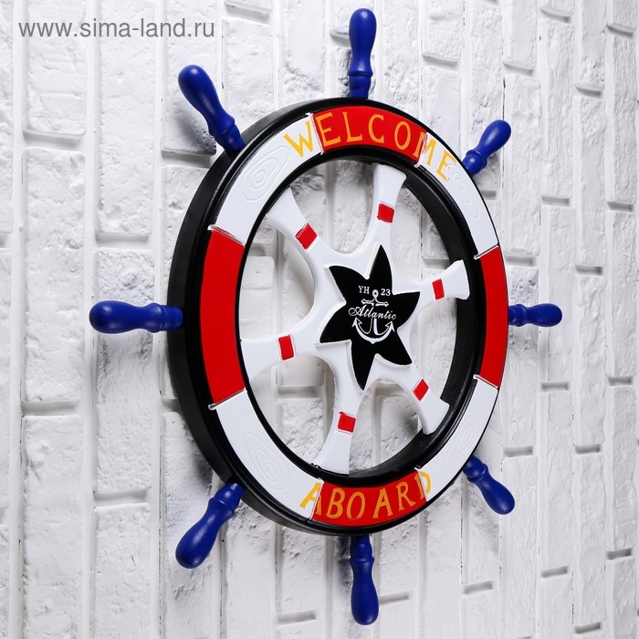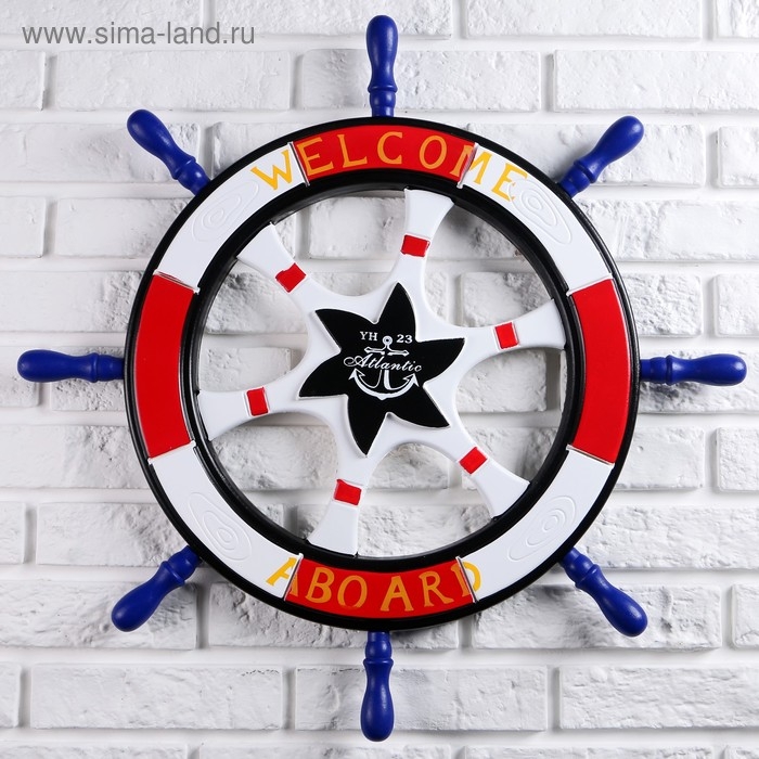 Штурвал сувенирный "Добро пожаловать на борт" красный 62см