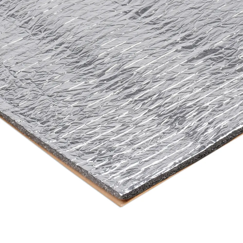 Теплозвукоизоляционный материал - покрытый алюминиевой фольгой или металлолавсаном вспененный пенополиэтилен с полимерным влагостойким клеевым слоем. Толщина мастичного клеевого слоя 2 мм и его вязкопластичные характеристики придают материалу вибродемпфирующий эффект.