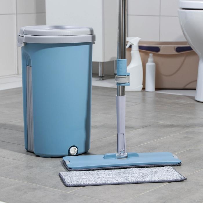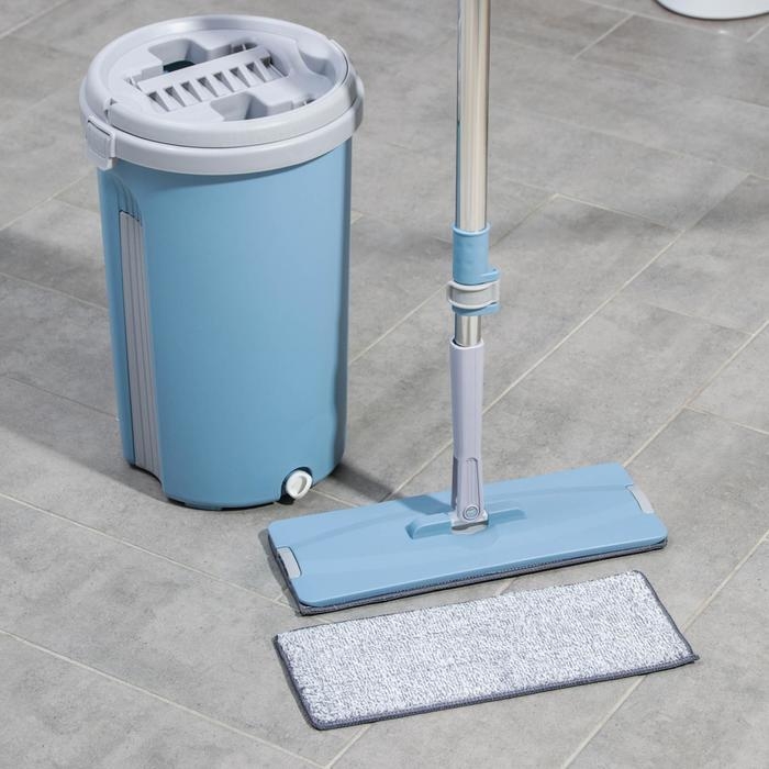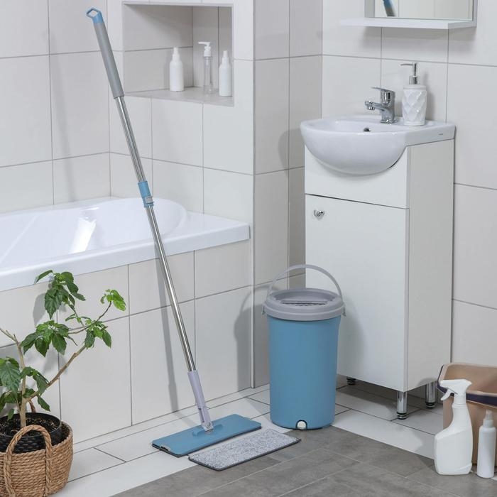 Швабра с отжимом и ведро Доляна: швабра плоская, ведро с двумя отсеками, 8 л, дополнительная насадка