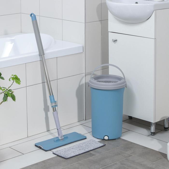 Швабра с отжимом и ведро Доляна: ведро с отсеками 10 л, 24×38 см, швабра плоская 32×12×120 см, насадка с карманами с двух сторон