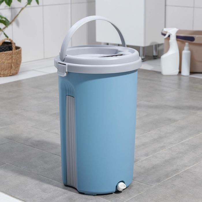 Швабра с отжимом и ведром на колёсиках с пластиковой центрифугой Доляна, 14 л, швабра, запасная насадка из микрофибры, МИКС