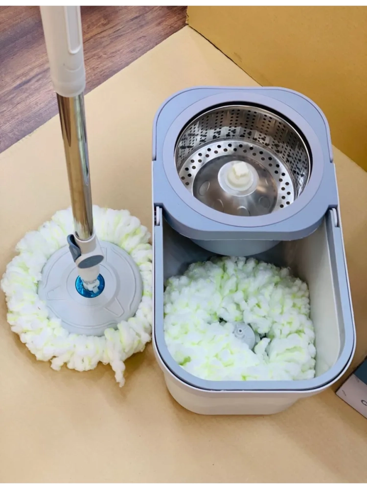 Швабра с ведром и отжимом — удобный и эффективный инструмент для мытья полов. Она обладает рядом преимуществ, которые делают ее незаменимой в быту. Швабра круглая - это удобный и эффективный инструмент для быстрой и качественной уборки дома. Она оснащена инновационным механизмом отжима, который позволяет легко и быстро удалять воду с насадки. Благодаря круглой форме швабры, она легко проникает в труднодоступные места, обеспечивая тщательное мытье полов. Умный отжим: специальная конструкция ведра с центрифугой позволяет быстро и без усилий отжимать швабру, не пачкая руки и не наклоняясь к ведру. Благодаря продуманной конструкции швабры и удобному механизму отжима, вы сможете легко и быстро убрать весь дом без лишних усилий. Круглая швабра с ведром станет незаменимым помощником в вашем доме! В комплект входит ведро с двумя отсеками, предназначенными для полоскания и отжима. Насадка изготовлена из микрофибры, которая эффективно удаляет грязь и пыль, не оставляя разводов и царапин на поверхности пола. Это идеальный выбор для тех, кто ценит свое время и хочет получить качественный результат уборки. Конструкция швабры позволяет проникать под кровати, диваны и другую мебель. Она поворачивается на 360 градусов и легко огибает углы, ножки мебели и разные препятствия. Швабра подходит для бытового и профессионального мытья разных видов напольного покрытия с большой площадью: ламинат, кафель, линолеум, не занимает много места, ее удобно хранить.