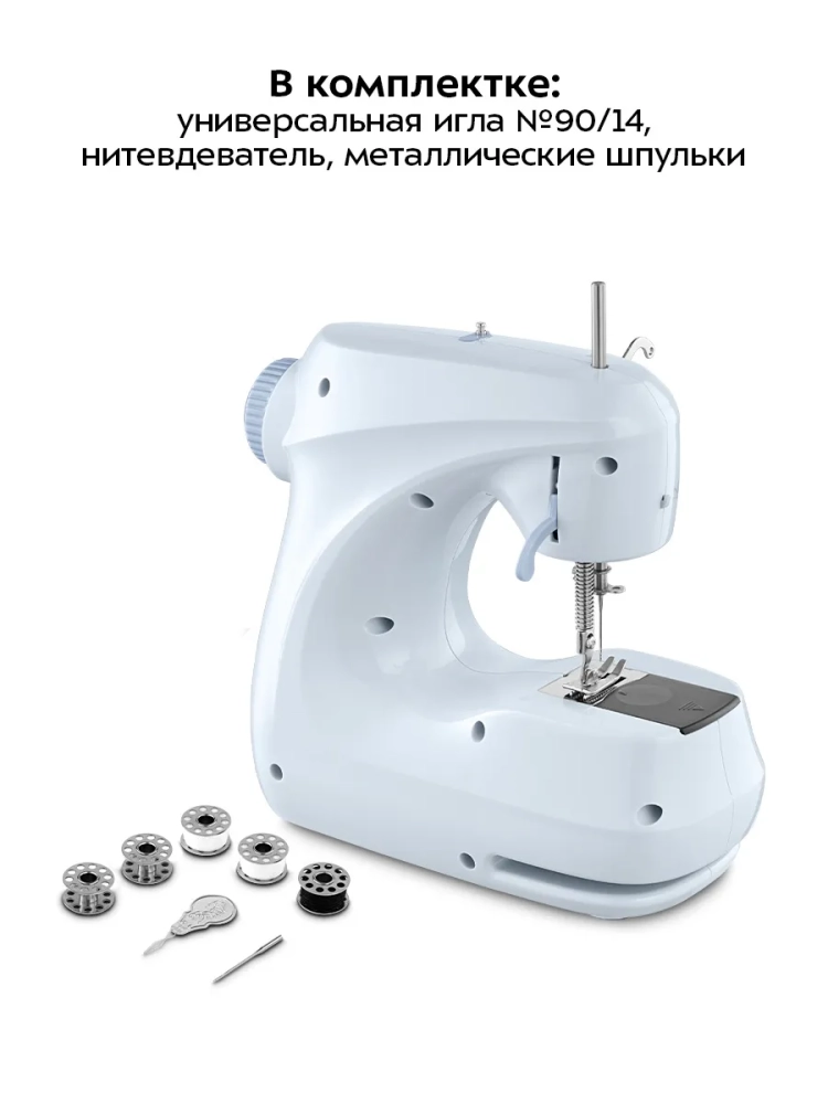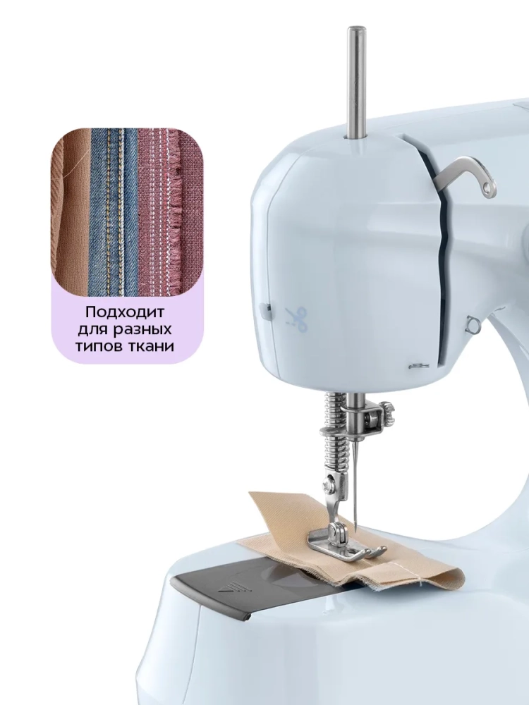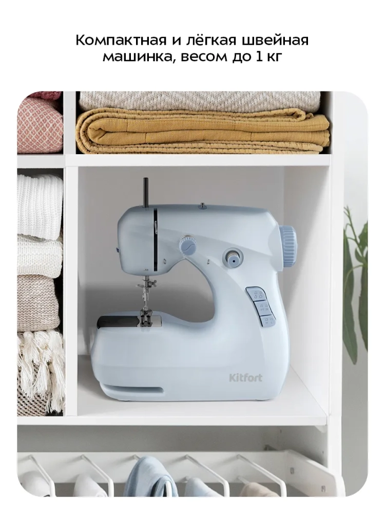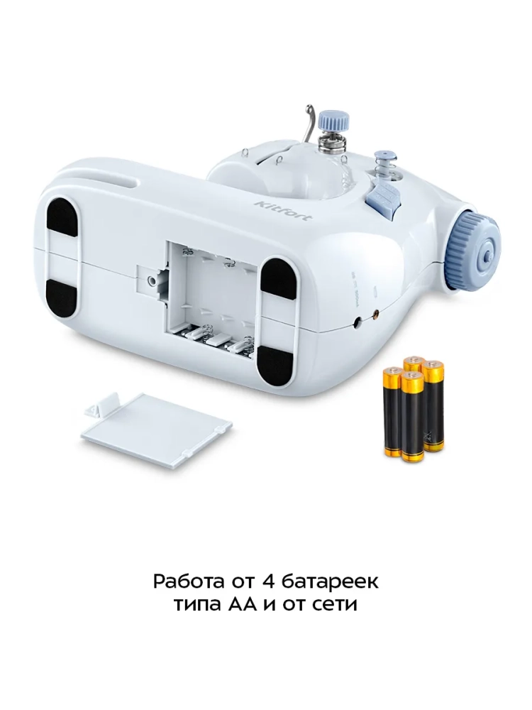 Kitfort КТ-6802 — портативная швейная машина, предназначенная для быстрого ремонта одежды и изделий из текстиля. Портативная швейная машина очень компактная и легкая, ее вес составляет всего 1 кг, она не займет много места у вас в доме, при транспортировке или хранении. КТ-6802 может работать и от сети, и от 4 батареек типа АА, благодаря чему ее при необходимости можно взять с собой.