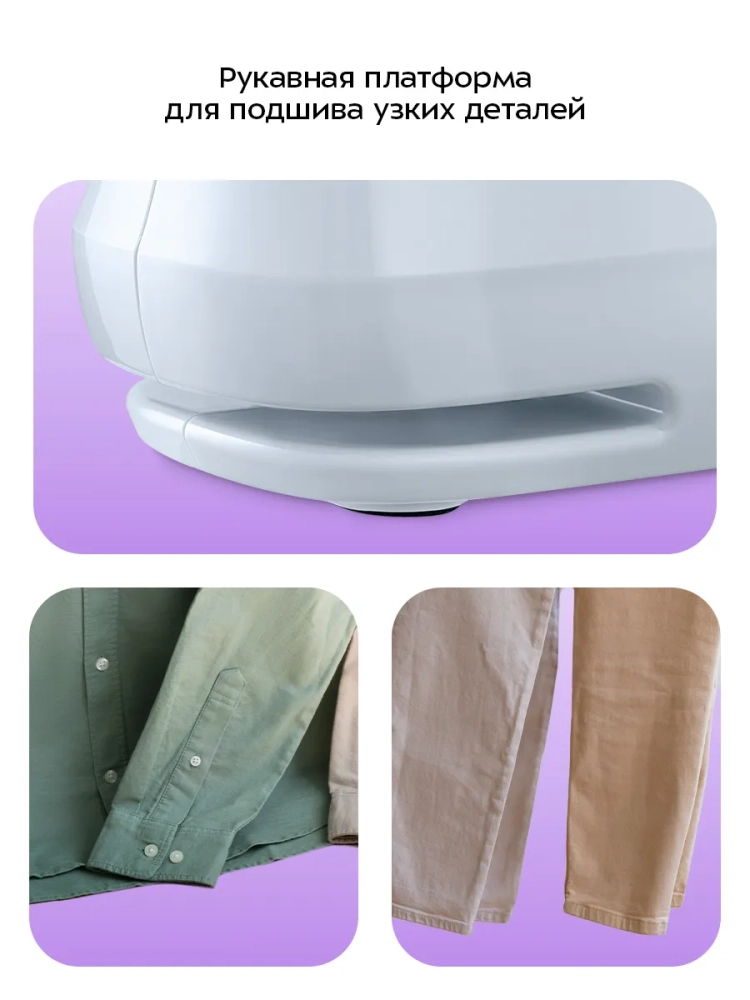 Швейная машина КТ-6802 оснащена рукавной платформой, на которой удобно обрабатывать узкие детали одежды, например, манжеты рукавов.