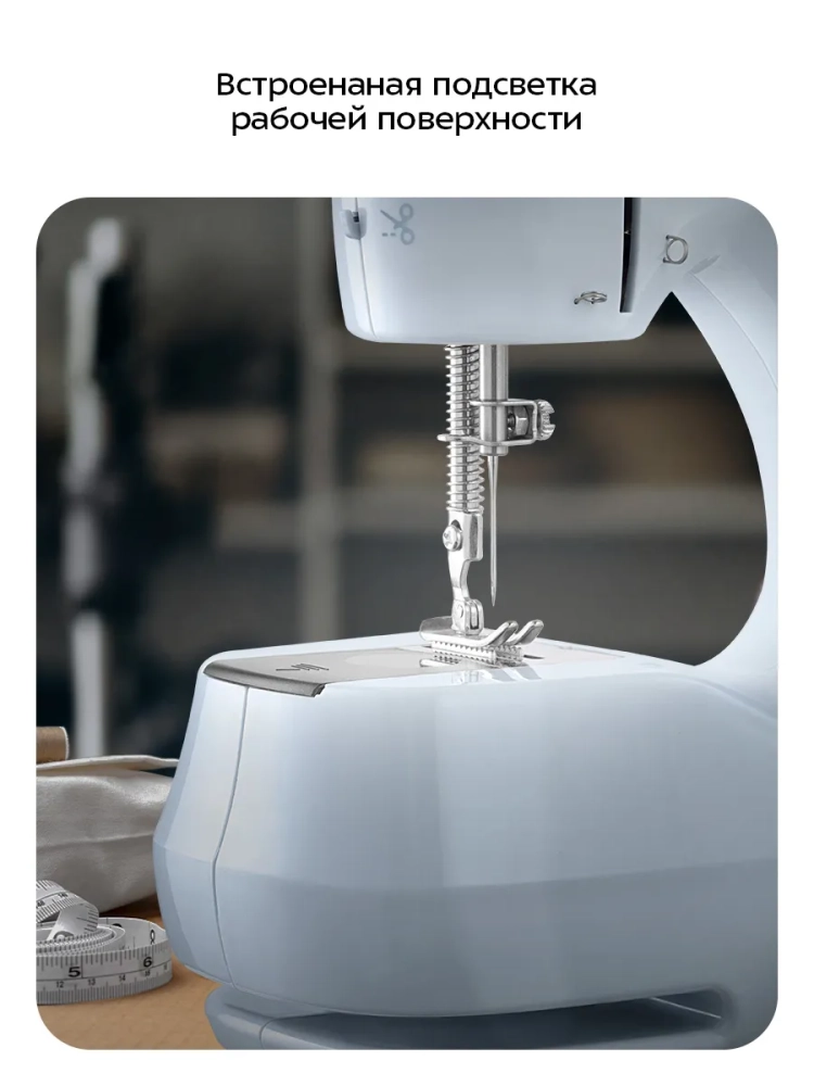 Данная швейная машина отличается простым, интуитивно понятным управлением, позволяющим работать на ней новичкам в шитье. Она прокладывает только прямую строчку, но благодаря регулировке натяжения нити подходит для работы с разными типами тканей. Также у устройства есть возможность шить в автоматическом режиме без использования ножной педали. Благодаря подсветке рабочей поверхности глаза меньше устают во время работы.