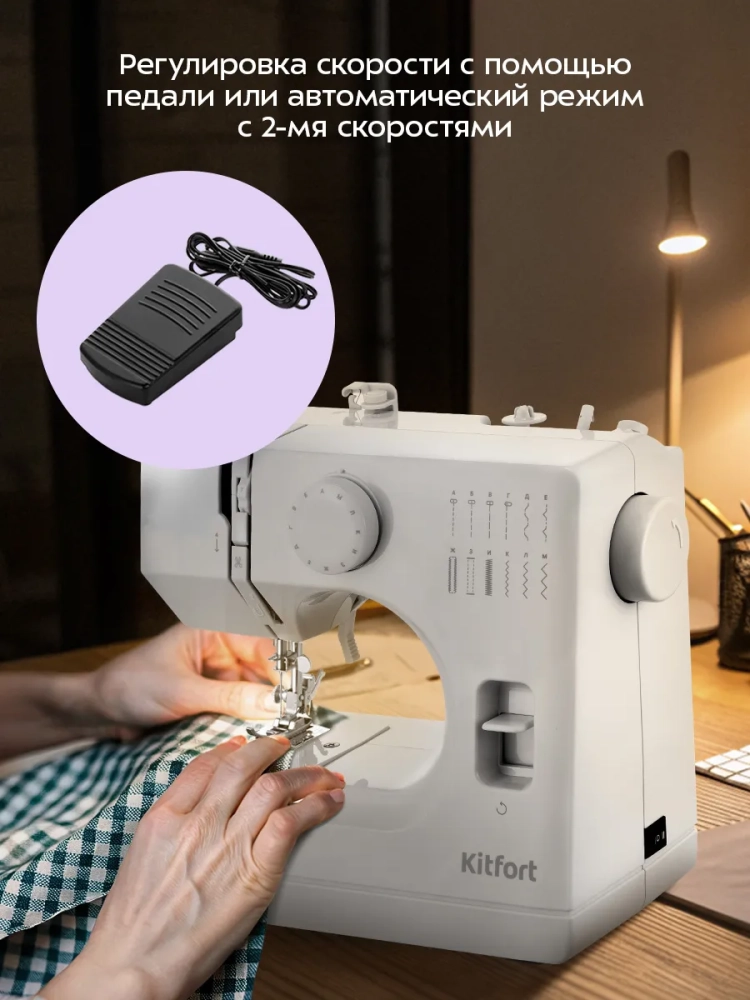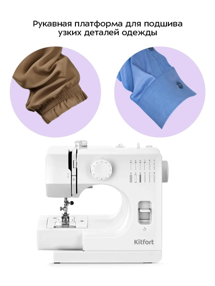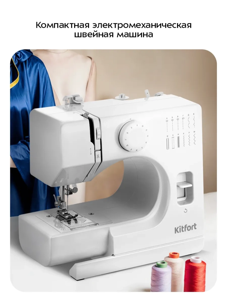 Швейная машина Kitfort КТ-6043 — это компактная электромеханическая швейная машина, у которой есть оптимальный набор функций для пошива и ремонта одежды и изделий из текстиля. Швейная машина небольшая и легкая, ее вес всего 2 кг, она не займет много места при транспортировке и хранении.