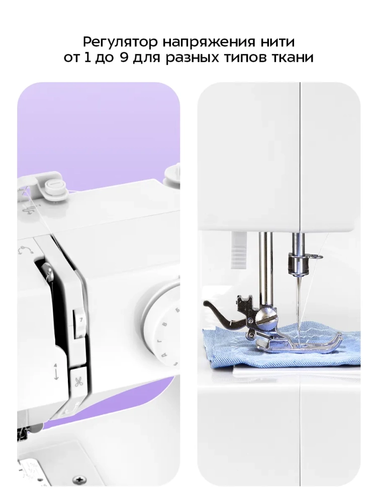 Скорость работы прибора можно регулировать с помощью ножной педали или установить автоматический режим и выбрать медленную или быструю скорость шитья.