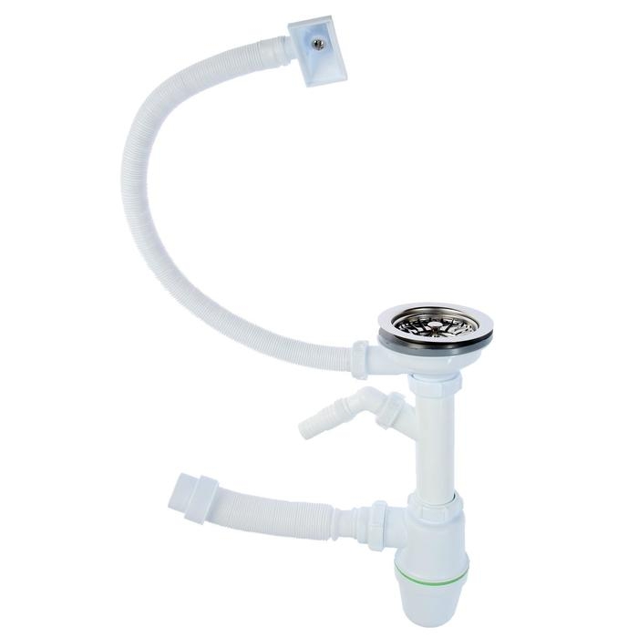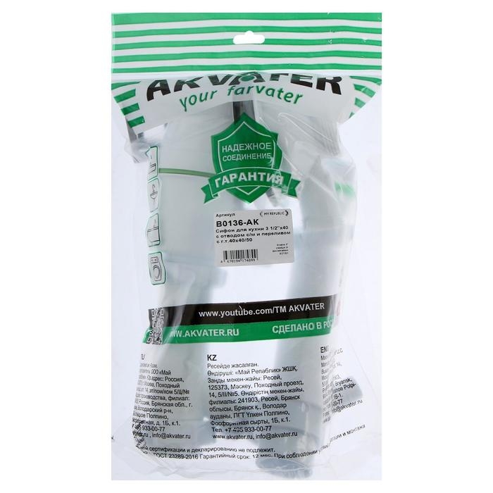 Сифон для мойки Akvater, 3 1/2", прямоуг. перелив, отвод для стир. машины, с гофрой 40/50 мм