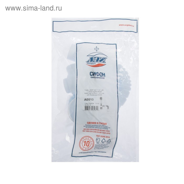 Сифон для мойки "АНИ Пласт" C0110, 1 1/2" х 40 мм, с гофрированной трубой 40 x 50 мм