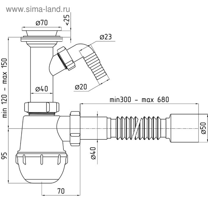 Сифон для мойки "АНИ Пласт" Грот A2010, 1 1/2" х 40 мм, с отводом, с гофротрубой 40 x 50 мм