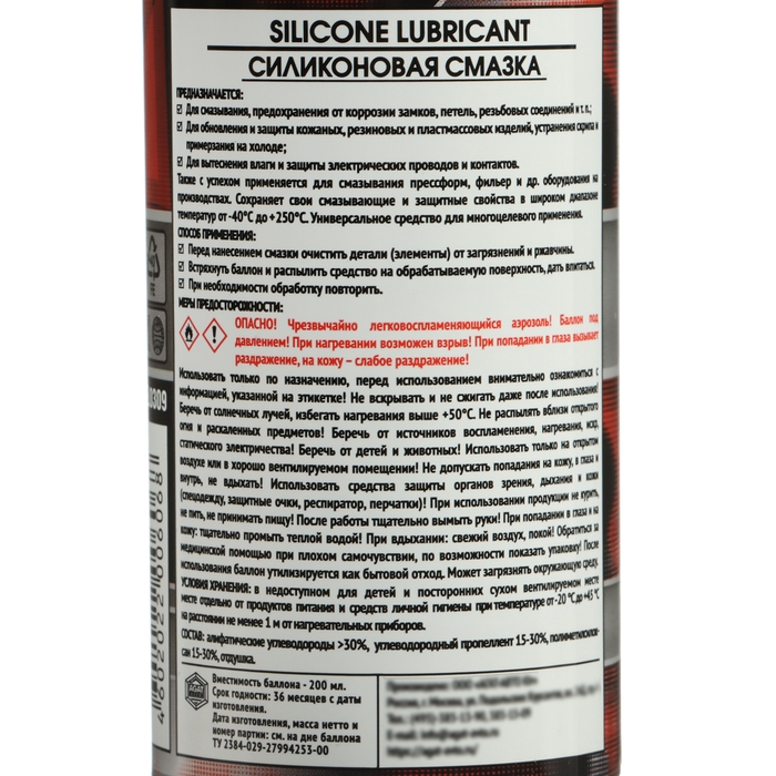 Силиконовая смазка Silverline предназначена для смазывания, предохранения от коррозии и замерзания в зимнее время замков, петель, резьбовых соединений, точных механизмов, для осушения и защиты электрических проводов и контактов. Кроме того, предназначена для смазывания, обновления и защиты резиновых и пластмассовых деталей, устранения скрипа и примерзания на холоде, для обновления и защиты изделий из кожи и кожзаменителей. Также с успехом применяется для смазывания прессформ, фильер и др. оборудования на производствах. Силиконовая смазка сохраняет свои смазывающие и защитные свойства в широком интервале температур от -60 °С до +200 °С. В отличие от существующих аналогов на рынке наш продукт содержит повышенное содержание силикона, а аэрозольный баллончик снабжен двумя аэроголовками с трубочкой для обработки как поверхностей так и труднодоступных мест.