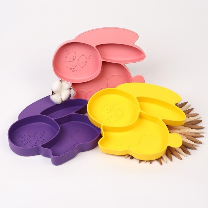 Силиконовая детская тарелка «Зайка» с секциями, цвет МИКС
