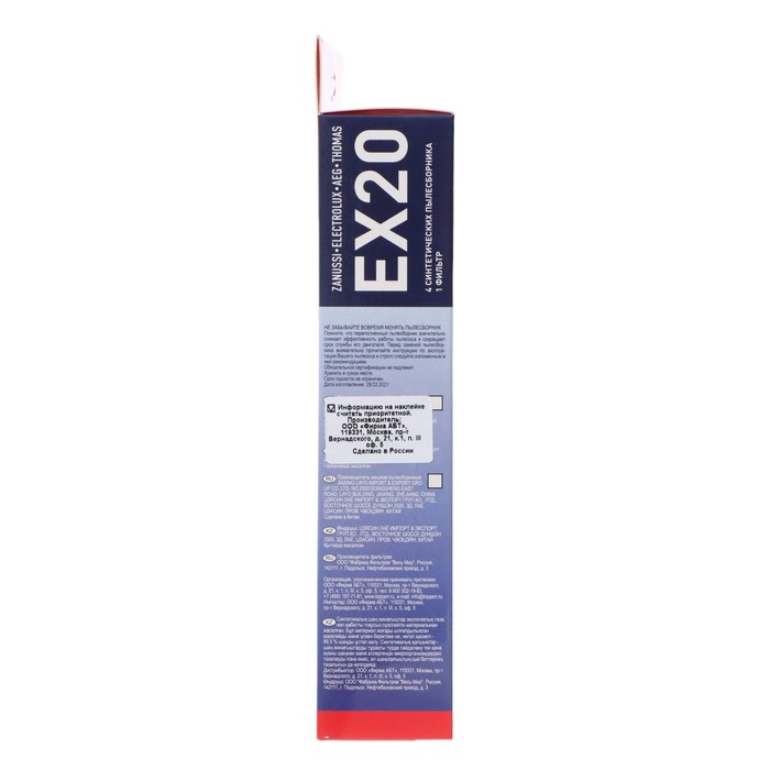 Синтетический пылесборник Topperr EX 20 для пылесосов Aeg, Electrolux, 4 шт. + 1 фильтр