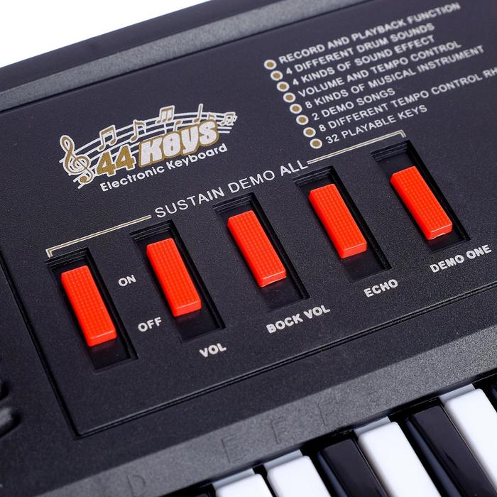 Синтезатор «Супермузыкант» с микрофоном, 44 клавиши, работает от сети и от батареек