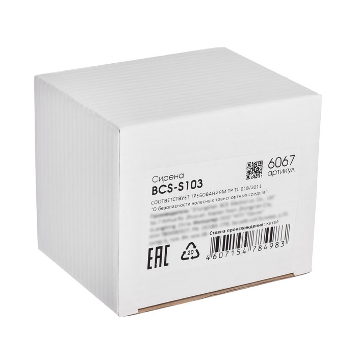 Сирена автомобильная Вымпел BCS-S103, 6-ти тональная, 20 Вт, 80х75х100 мм
