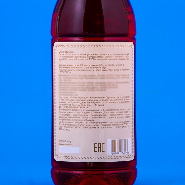 Сироп "Мамин рецепт" со вкусом малины, ПЭТ, 1 л