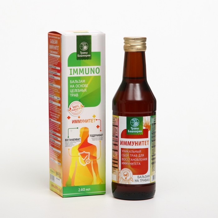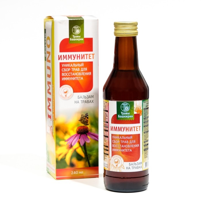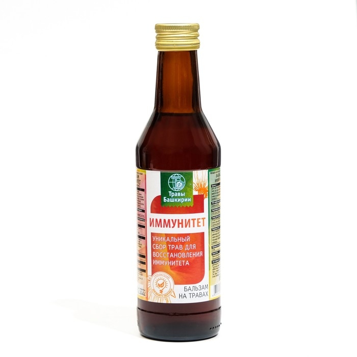 Бальзам «Иммунитет» – это натуральное средство на основе целебных трав, плодов и ягод произрастающих в Башкирии. Он содержит комплекс биологически активных веществ, которые укрепляют здоровье человека. Бальзам рекомендуется употреблять при ослабленном иммунитете, повышенных физических и умственных нагрузках, а также людям, которые часто подвергаются простудным заболеваниям.