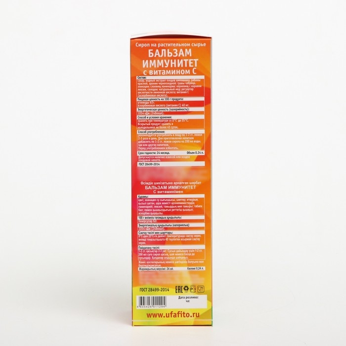 Сироп на растительном сырье «Бальзам Иммунитет с витамином С» с мёдом, 240 мл