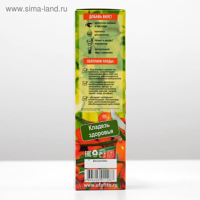 Сироп на растительном сырье «Из плодов облепихи», 240 мл
