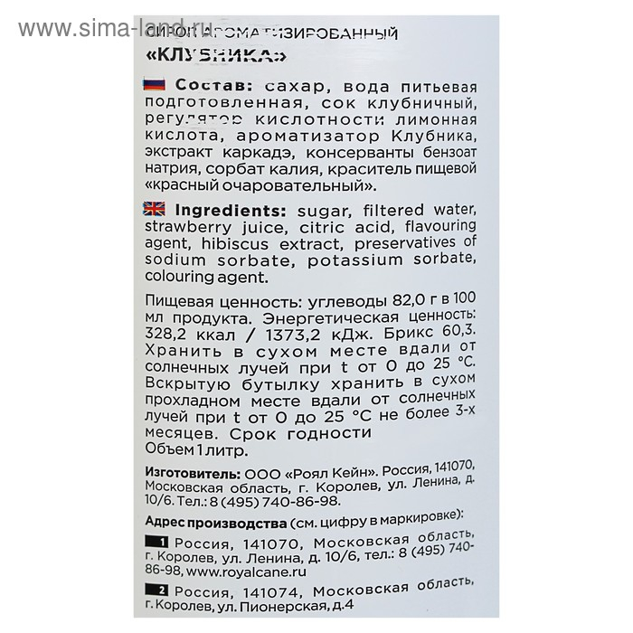 Сироп Royal Cane «Клубника», 1 л
