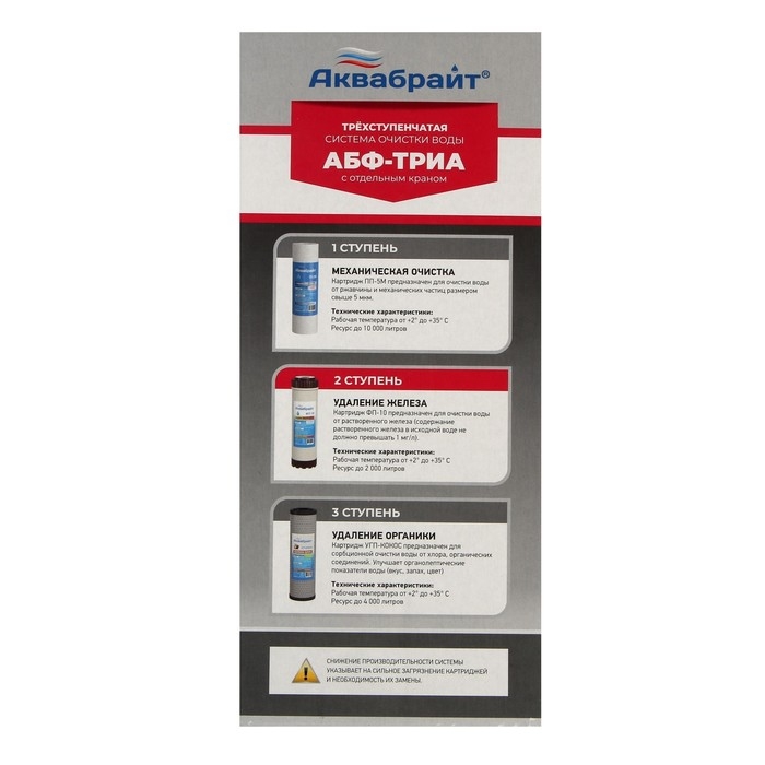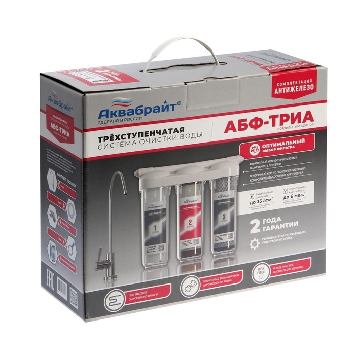 Система для фильтрации воды "АБФ-ТРИА - АНТИЖЕЛЕЗО", 3-х ступенчатый, для жесткой воды, кран