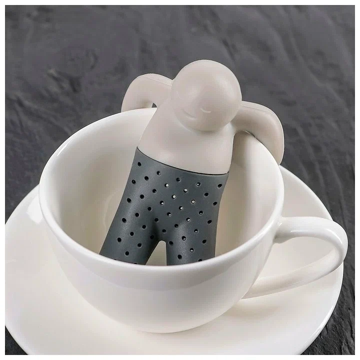 Силиконовое ситечко предназначено для заваривания листового чая, трав, ягод непосредственно в посуде. Благодаря небольшому размеру отверстий позволяет насладиться свежезаваренным напитком, не допуская попадания в кружку крупных листьев и чаинок. Ситечко изготовлено из пищевого силикона. Материал не токсичен, безопасен в использовании, не имеет запаха. Допустимо мыть в посудомоечной машине. Компактный аксессуар пригодится дома, на даче, на работе, в поездках и путешествиях. Универсальное заварочное ситечко выполнено в виде забавного человечка. С помощью его «рук» аксессуар для чаепития удобно и надежно крепится на краях кружки, стакана или чашки. Оригинальное ситечко станет отличным подарком друзьям и близким к любому празднику.