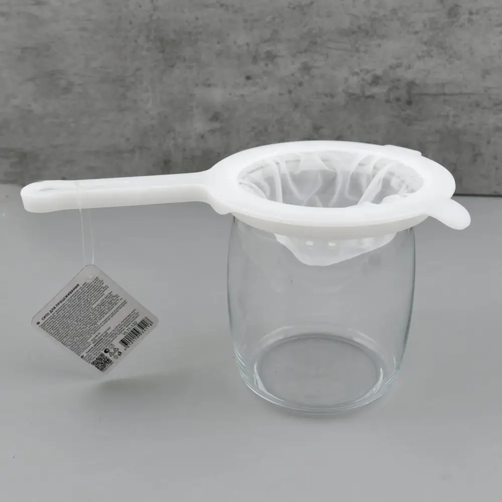 Предназначено для фильтрации и процеживания чая, кофе, травяных отваров, свежевыжатых соков, компота, растительного молока, бульона, а также для отжима домашнего творога и сыра. Прочная нейлоновая сетка не пропустить даже самые мелкие частички продуктов. Благодаря термостойким свойствам нейлоновой сетки, сито можно использовать для заваривания чая и других горячих напитков. Перед первым применением и после каждого использования рекомендуется вымыть губкой или мягкой щеткой, можно с жидким моющим средством, сполоснуть проточной водой и просушить. Можно мыть в посудомоечной машине.