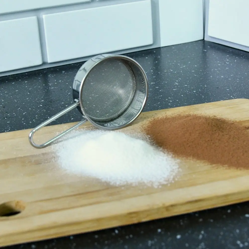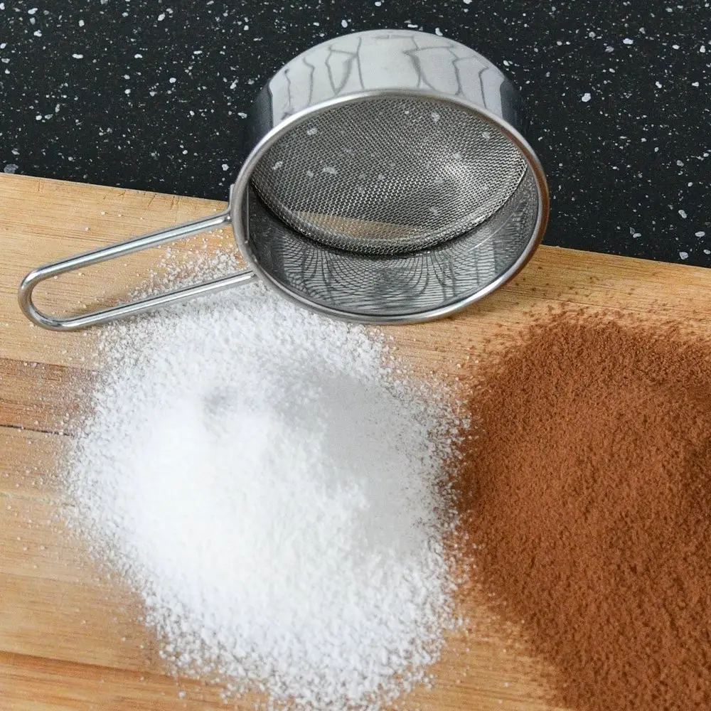 Чтобы сахарная пудра легла ровным слоем без комочков, ее рекомендуется просеивать. Специальное сито небольших размеров поможет просеять сахарную пудру или какао, избавиться от комочков. Просеивайте в специальную емкость, на лист бумаги или непосредственно на выпечку. Маленькое ситечко идеально подходит для того, чтобы посыпать выпечку сразу. Изделие не занимает много места при хранении.